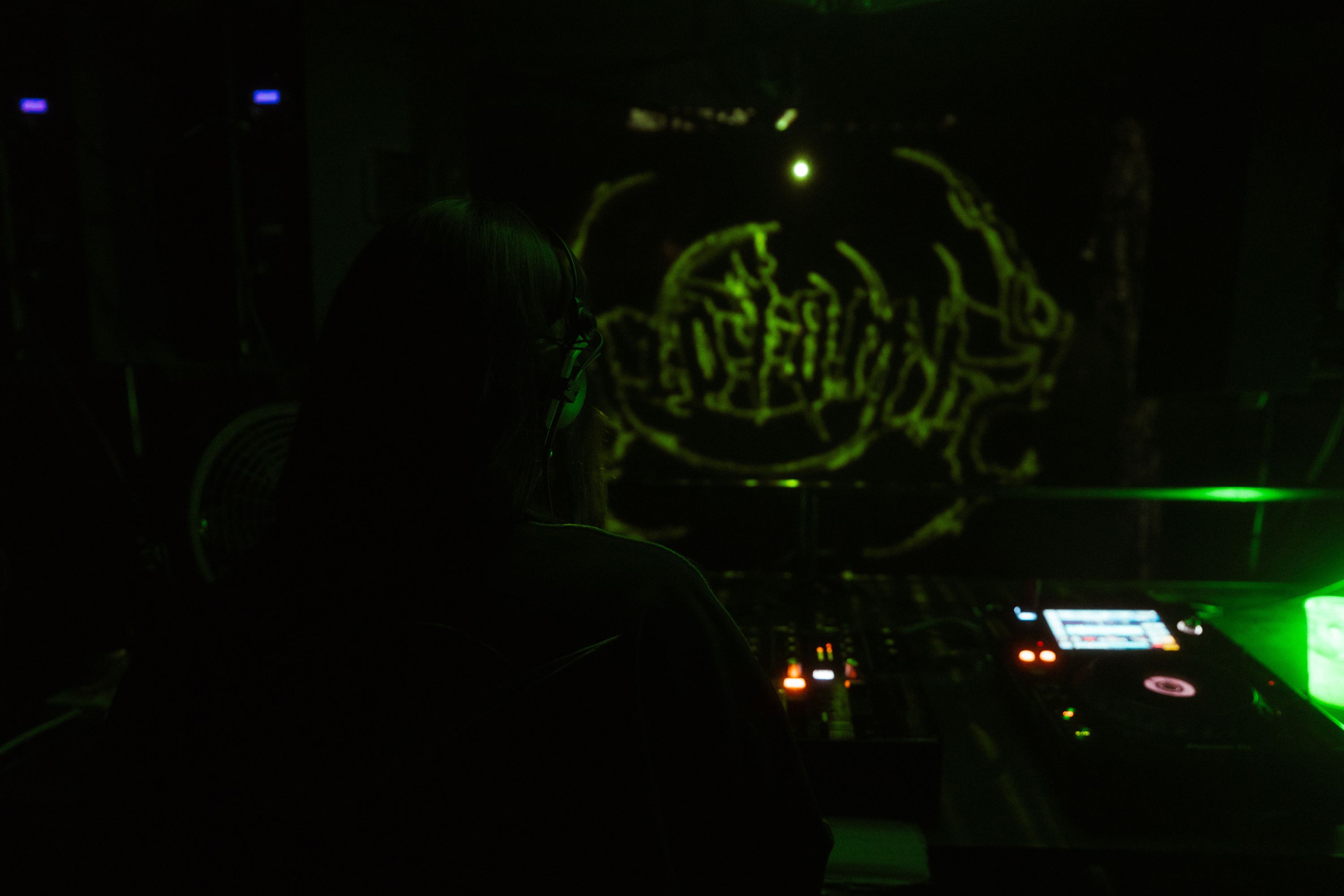 Aku, nuestro VJ, creó una destacable ilusión óptica en la escenografía. Elaborando de forma artesanal un telón, logró generar visuales holográficas que se integraban con el DJ. No fueron unas simples visuales: fue la presentación de una auténtica obra de arte visual y digital, en la que quien se encontrara en la cabina se convertía en parte de una narrativa, siendo el centro de una historia perfectamente contada.